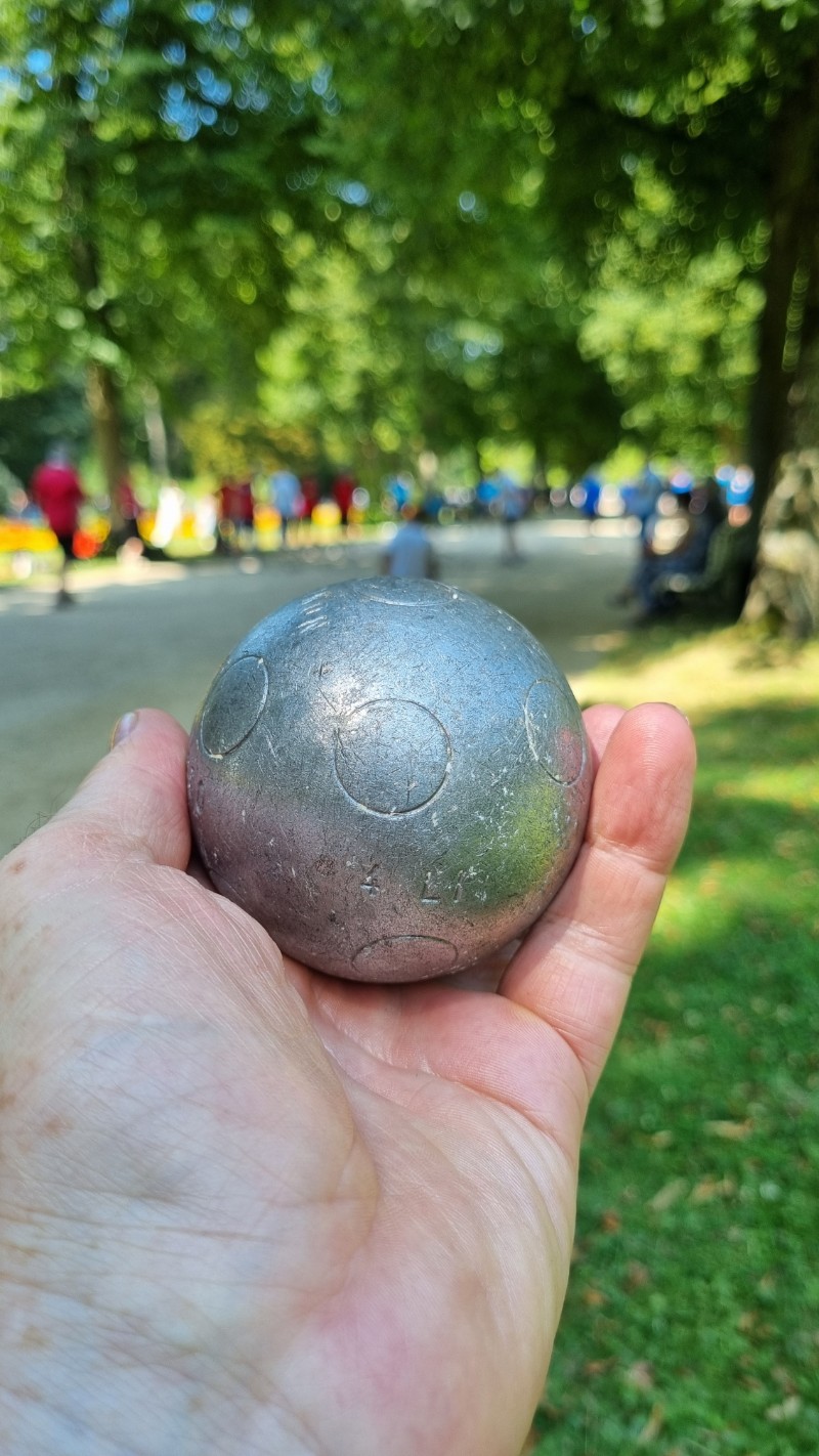 Es gibt zwei Möglichkeiten, Punkte zu machen: Entweder legt man seine Kugel sehr nah an das Schweinchen oder man schießt die gegnerischen Kugeln weg. Das macht es spannend, weil sich die Lage der Kugeln ständig ändern kann. Man muss dabei immer mit geschlossenen Füßen in einem Kreis stehen, daher kommt auch der Name Pétanque. Das Schöne daran ist, dass es sehr gesellig ist und man es fast überall spielen kann. Es ist eine Mischung aus Präzision und Taktik, die für jede Menge Unterhaltung sorgt.