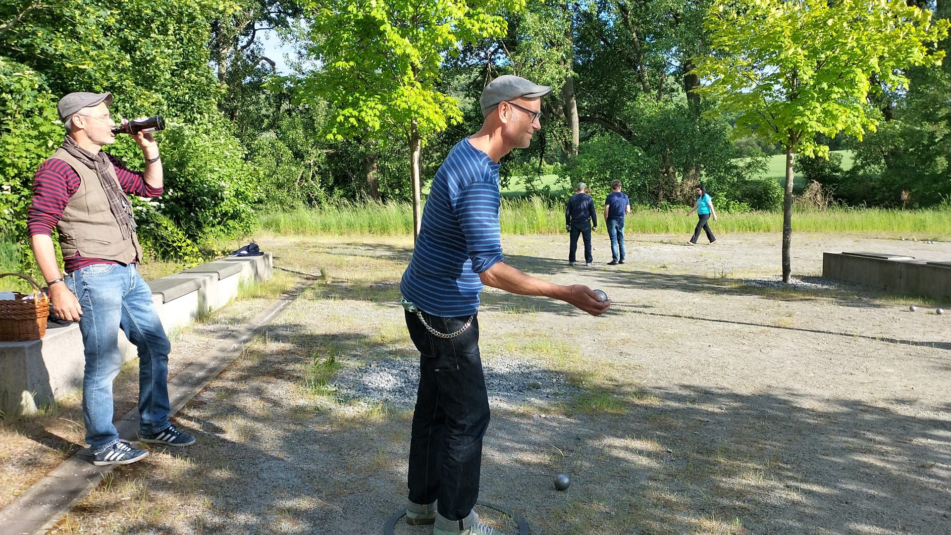 Das Universum schickte uns einige Zeit später einen "richtigen" Boulespieler in die Oberlausitz. Bastian Wienrich erklärte uns erst einmal, dass der Sport den wir betreiben wollten, eigentlich "Pétanque" heißt und natürlich eine urfranzösische Angelegenheit sei. Er zeigte uns die besten Techniken zum "Legen" und "Schießen" und vermittelte leidenschaftlich, dass es in erster Linie auf die Taktik ankommt. Ganz langsam verstanden wir das Spiel.